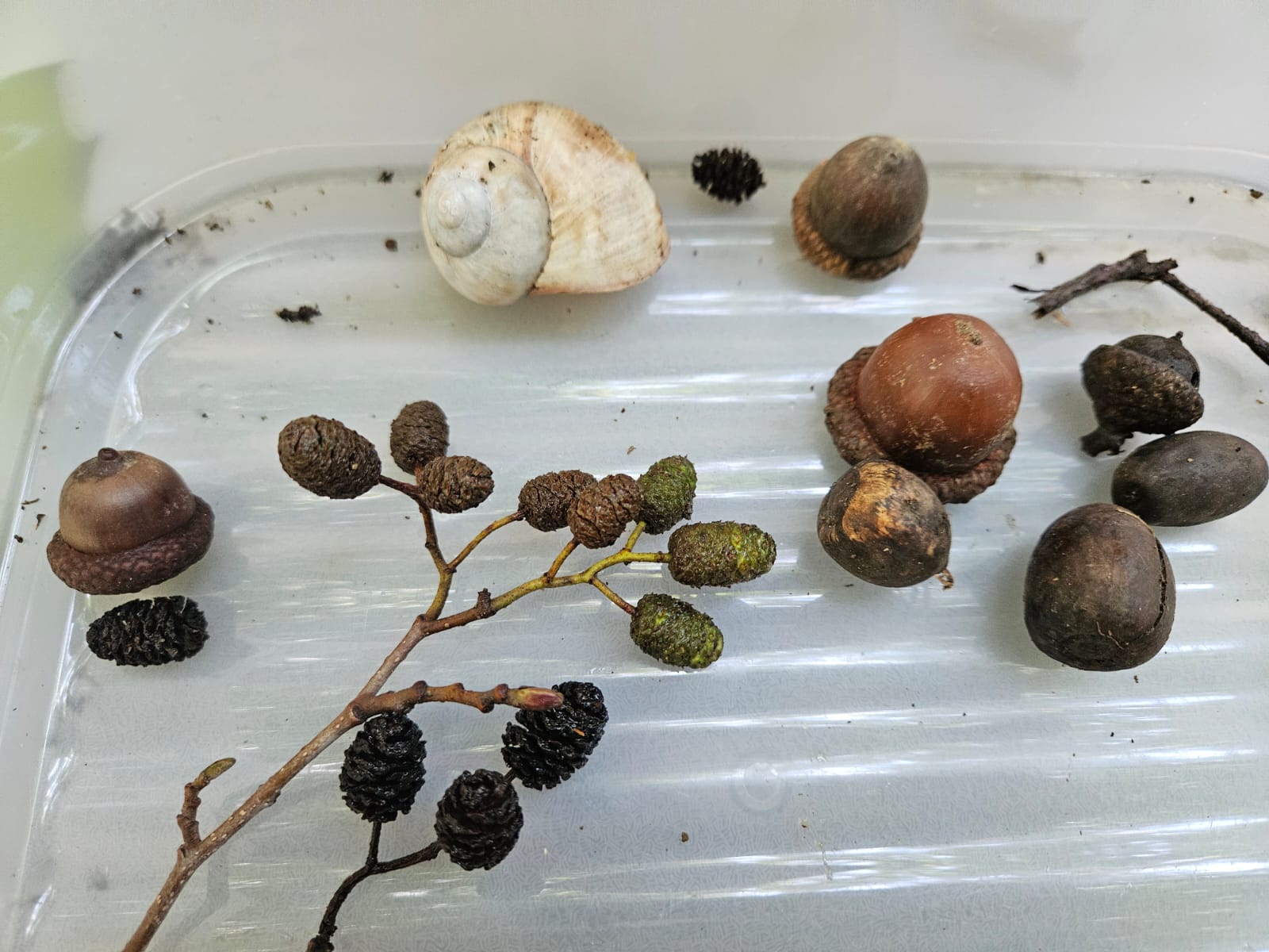 08.10.2025: Nejmenší se učili poznávat stromy a jejich plody, sbírali poklady v lese :)